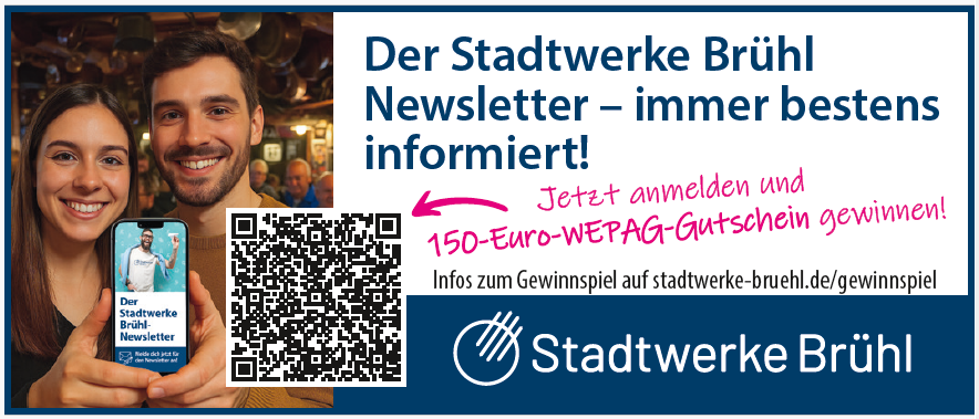 - Melde dich auf der Seite unseres Partners für den Stadtwerke Brühl -Newsletter an, bleib bestens informiert und gewinne mit etwas Glück deinen Einkaufsgutschein! 💌🍀